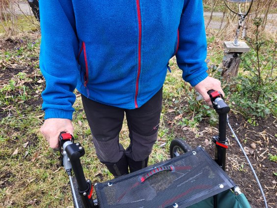 Tested myself to different settings when I drove up in Gysinge (Sweden) on lawns and footpaths and noted later in your excellent manual that you do not mention that you can angle the handles outwards at the same time as you raise/lower. I angled mine a bit outward and got a better angle for my wrists and could walk closer to the walker and walk more upright. This will help me tremendously in my future rehabilitation.