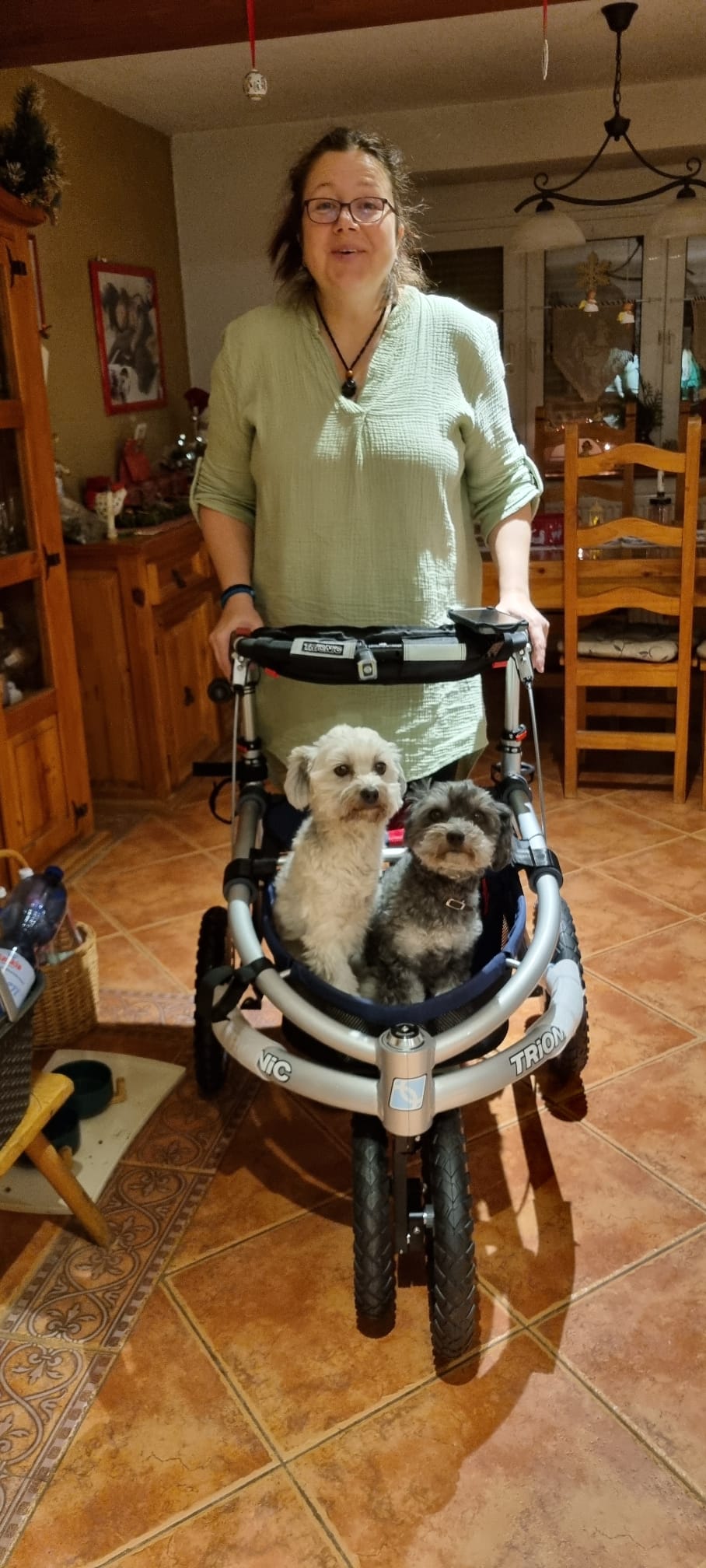 With it, I take my dog out for two hours every day. The walker is stable and safe.