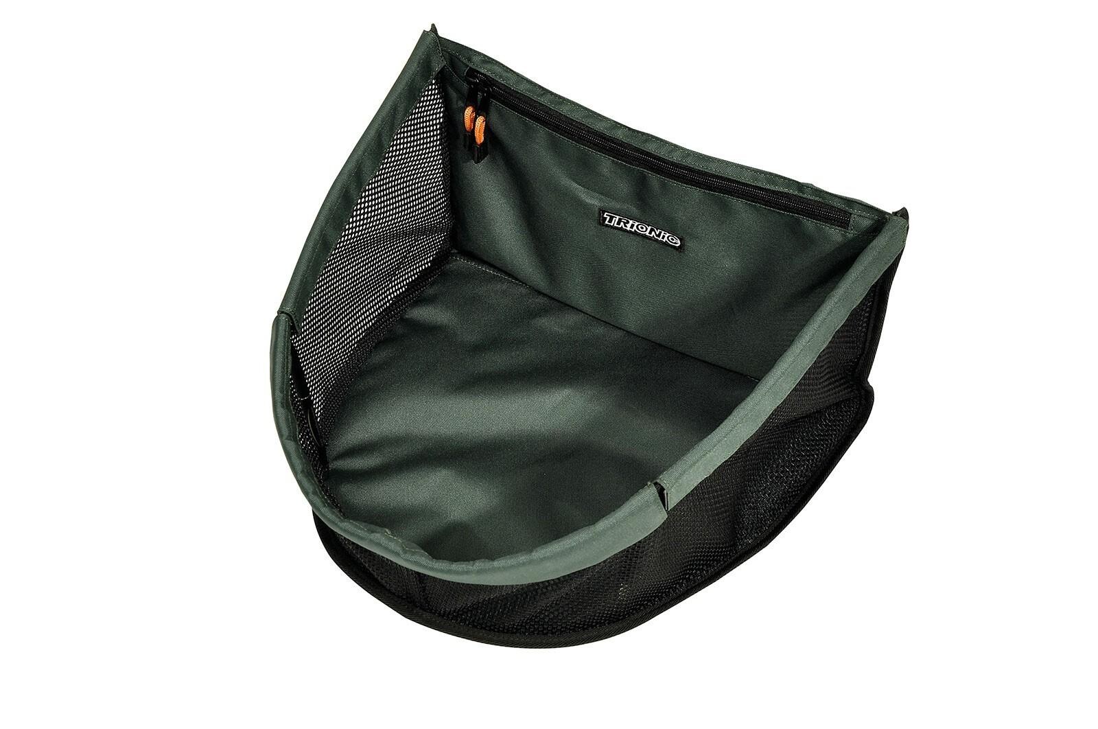 The basket of the Trionic Veloped has a 22-litre loading capacity. It has a small zippered pocket at the rear end for valuables and smaller objects. The Veloped basket is removable, and is attached to the frame basket rails with three velcro sections.