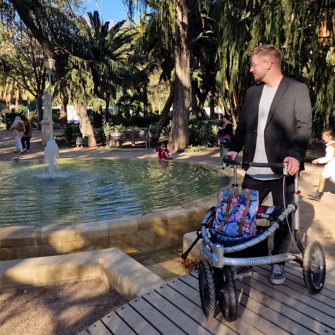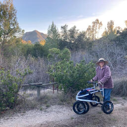 Thanks to its 3-wheeler design, the patented climbing wheel and considerably bigger wheels, the Veloped is the only truly off-road capable walker/rollator in the world. When walking on uneven and rough ground, the Veloped beats any rollator, every time.