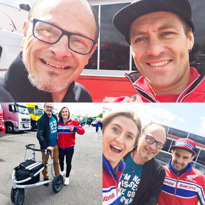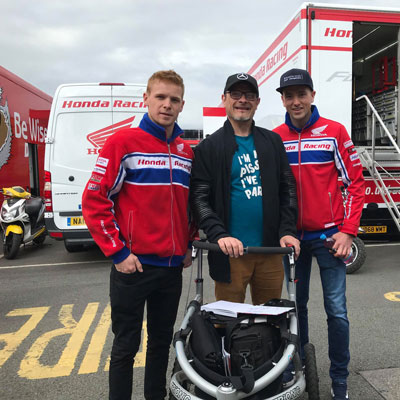 Je vais demander à Viv de me filmer dans la forêt de Delamere avec ça, car il y a de superbes sentiers, c'est le seul sur la route. Je le teste également au Parc de Oulton lors de la réunion du Superbike Britannique où je vais parcourir le circuit avec ça ! Je vais aussi me porter moi-même. Je n'ai pas été fâché d'avoir eu le t-shirt de Parky. Les cyclistes et le grand public et j'adore ça !! Merci beaucoup encore une fois les gars.